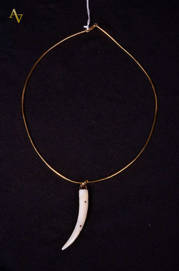 Pendente e seu cordão - madrepérola e ouro 18 k, em formato de presa de elefante - cordão em ouro 18 k. Peso total: 1...