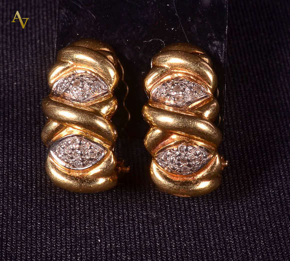 Par de brincos de ouro amarelo e brilhantes. Peso: 9.0 gr.
