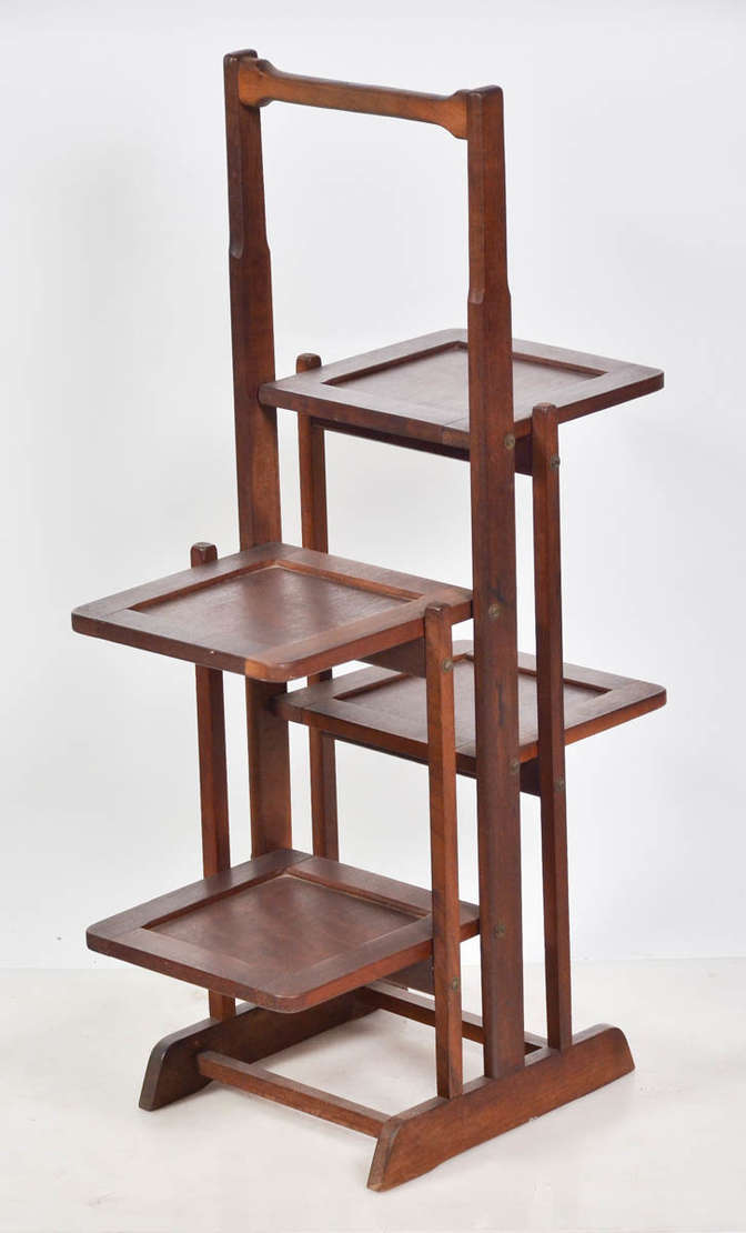 Mesa ninho de madeira nobre com 4 peças. Med. menor. 36 x 37 cm - alt. 66 cm; maior 54 x 33 cm - alt. 71 cm.