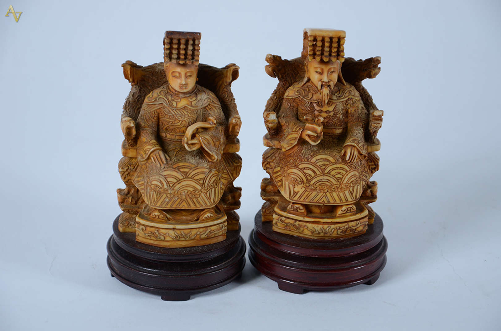 Imperador - Séc. XVIII - Escultura chinesa; madeira dourada rep. o Imperador em trajes militares, tendo a proteção do...