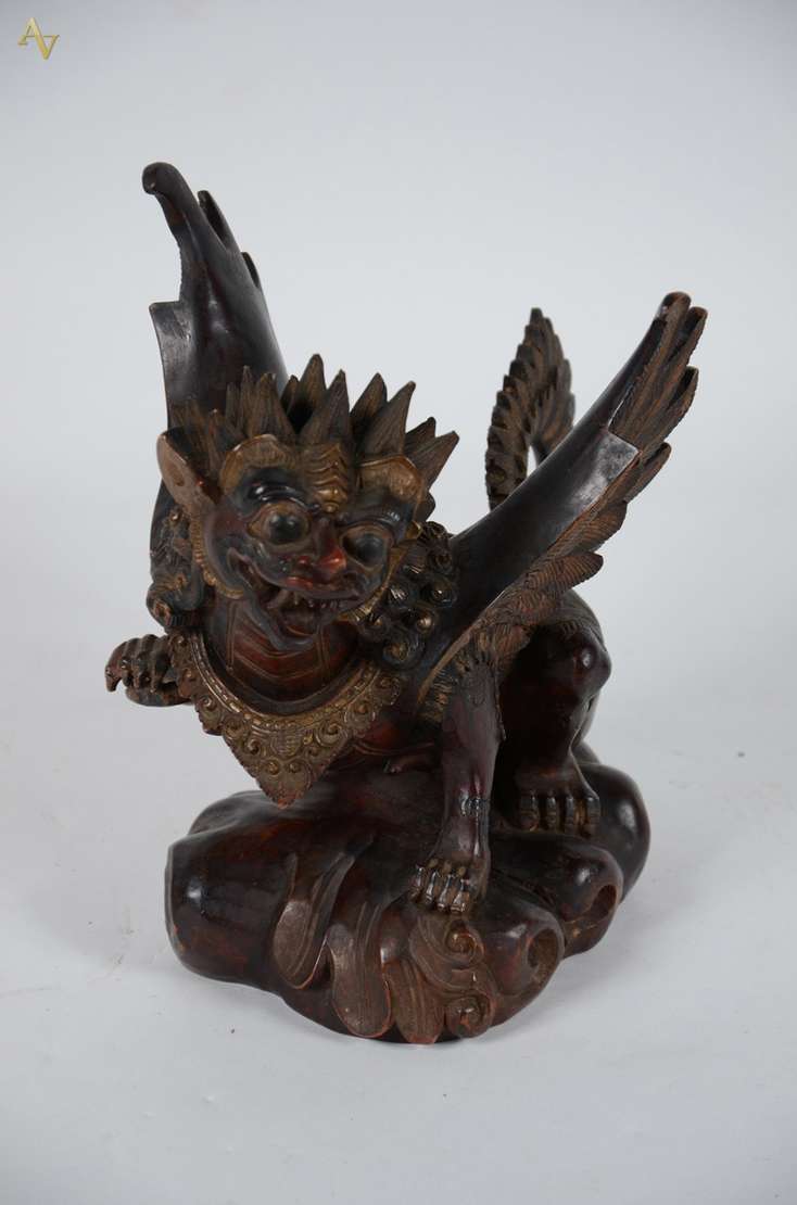 Divindade Hindú - Escultura indiana em madeira policromada e dourada - Séc XVIII. Med. 19,5 x 9 cm. Alt. 41 cm