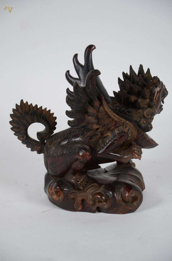 Imperador - Séc. XVIII - Escultura chinesa; madeira dourada rep. o Imperador em trajes militares, tendo a proteção do...