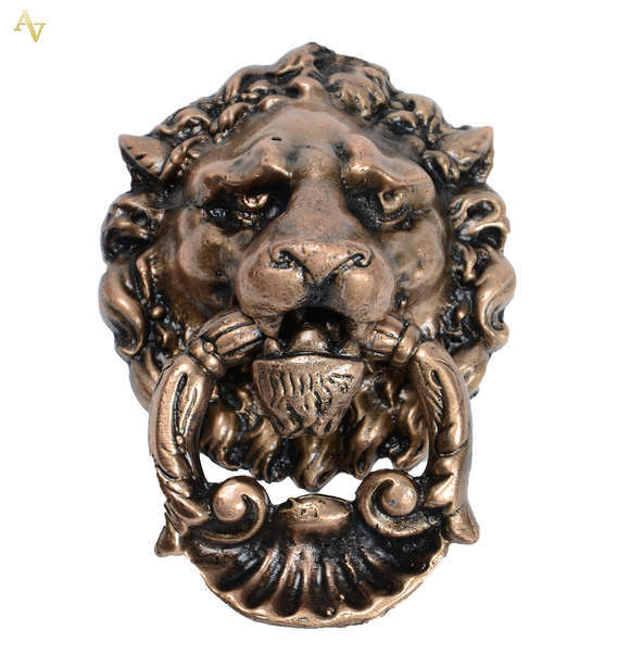 Aldrava de metal com figura de Leão. Medidas: 17 x 12 cm