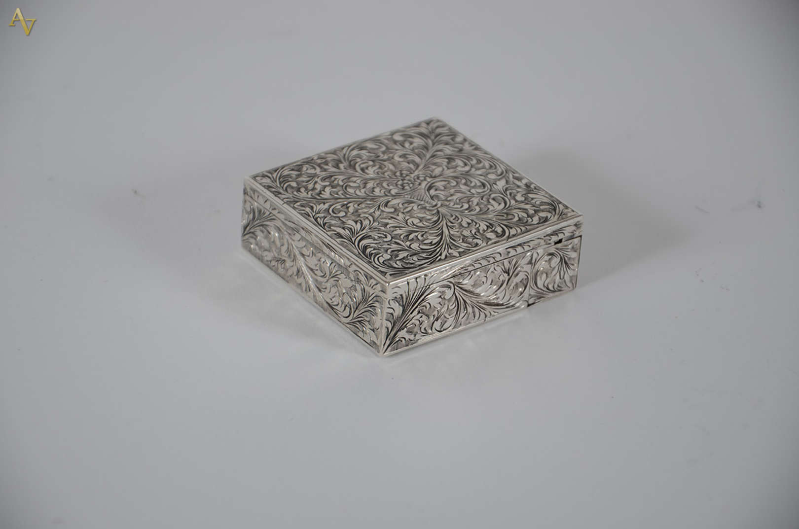 Caixa cigarreira de prata inglesa (pequenos amassados), med. 17,5 x 9 cm. altura 5,5 cm.