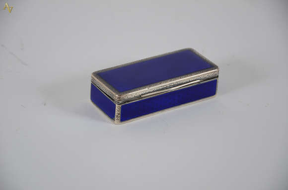 Caixa para rapé de prata e esmalte azul, medindo 8 x 3,5 altura 2 cm.