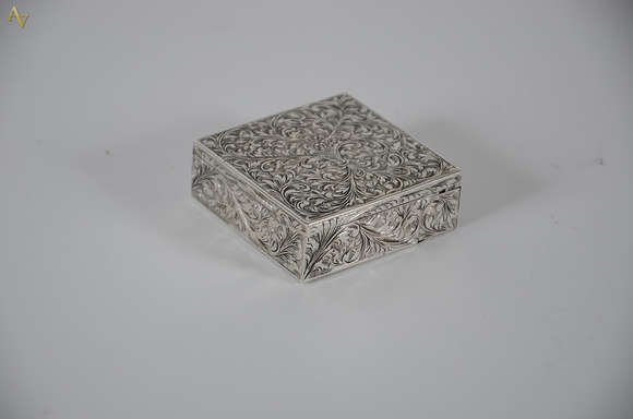 Caixa de prata indiana com espeferas em relevo, medindo 8 x 5,5 altura 2 cm.
