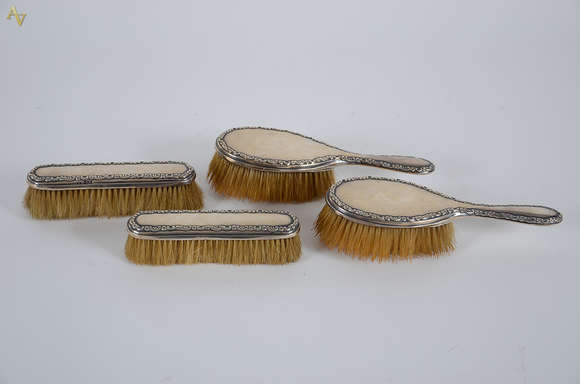 Conjunto para toucador de prata inglesa contrastada, composto de 4 escovas, (comprimentos 16 e 22 cm)