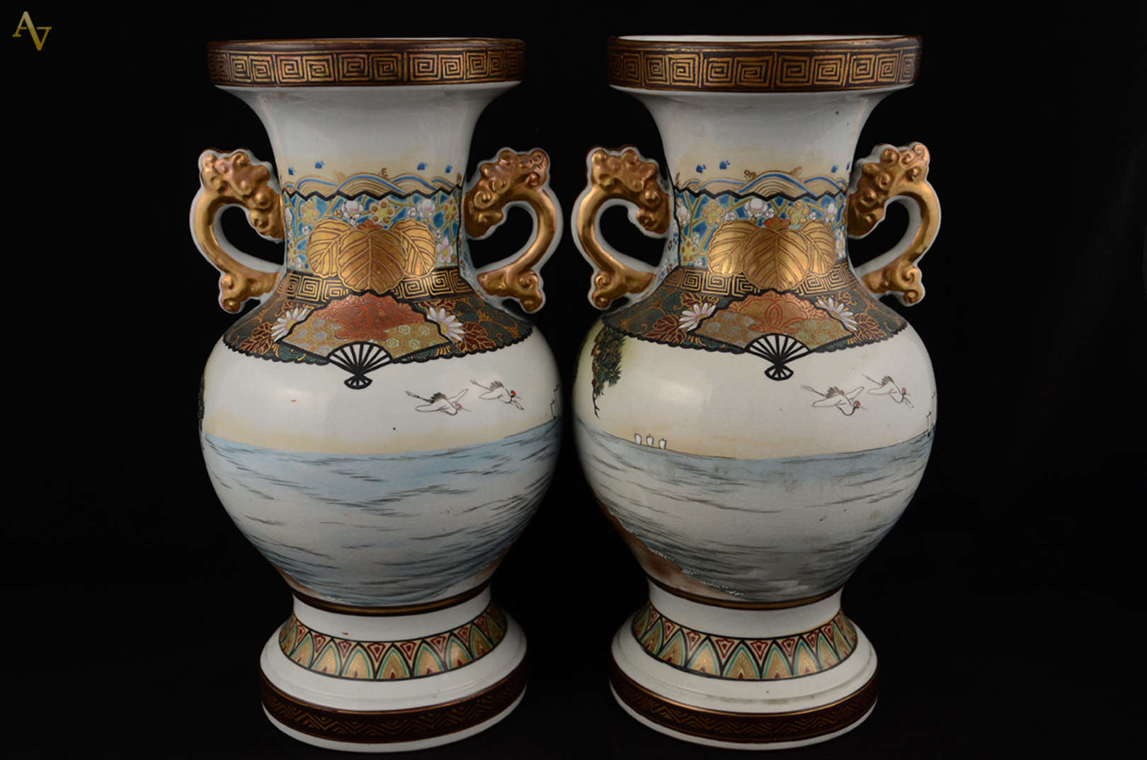 Par de vasos de porcelana francesa VIEUX PARIS, decorados com borboletas e flores em policromia (um deles com restaur...