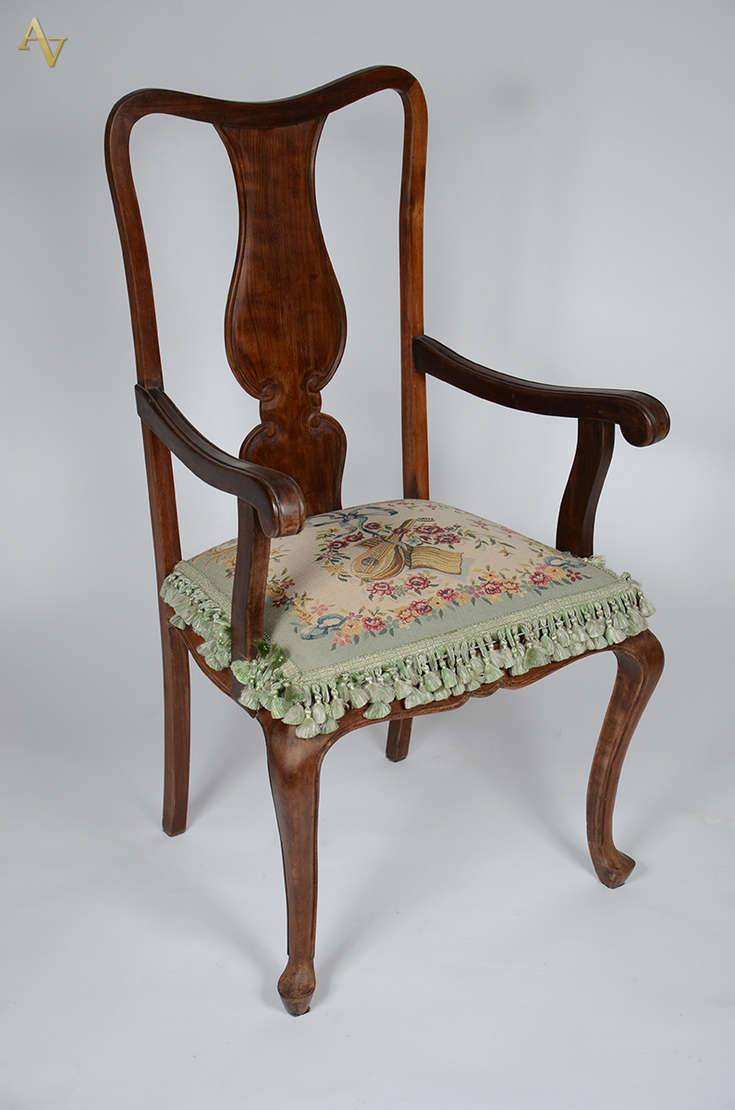 Cadeira D.MARIA de madeira nobre filetada e assento em palhinha ( almofada xadrez solta).