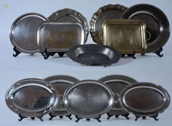 Baixela de prata 90 com 8 travessas (diversas decorações) e 3 pirex.