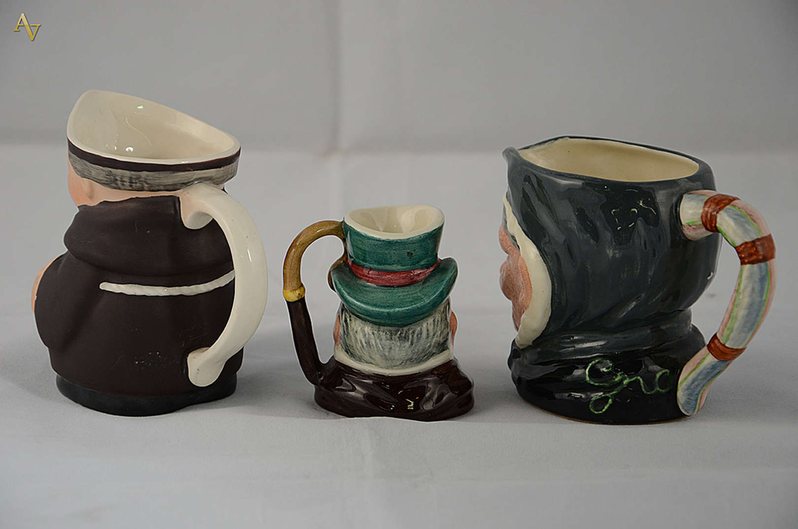 Quatro canecas de porcelana inglesa Royal Doulton. Alturas de 5 cm à 8 cm.