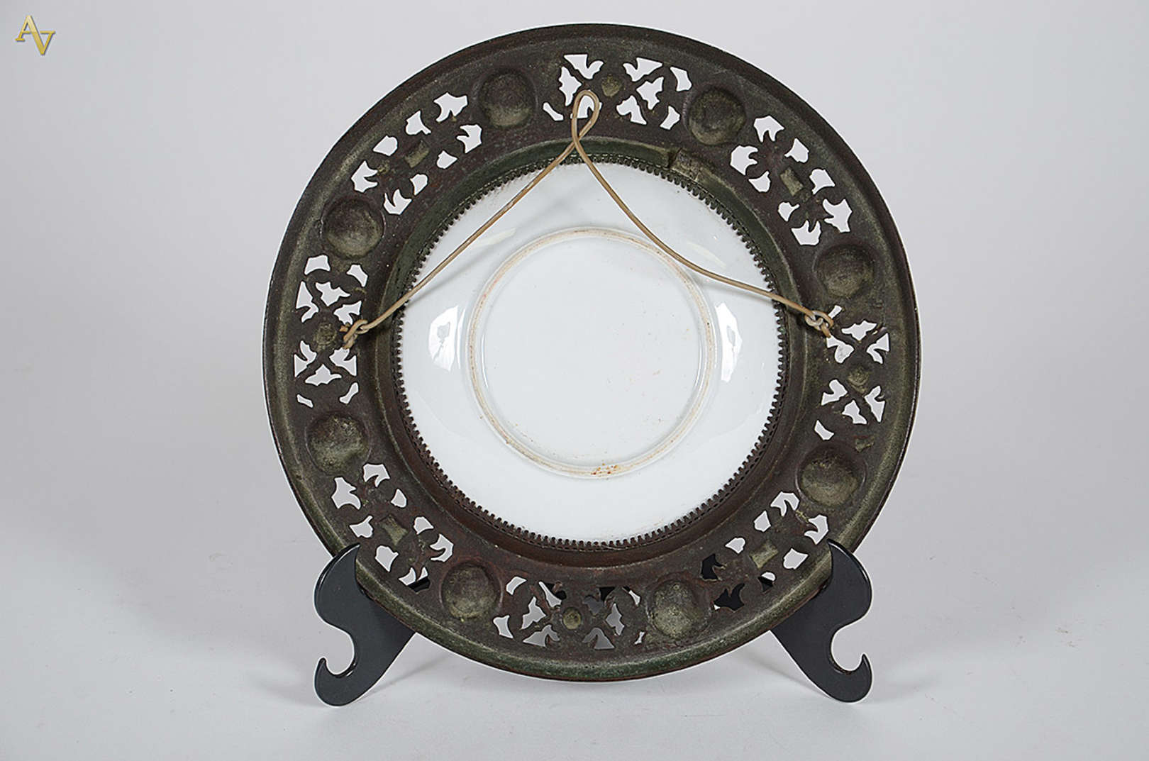 Conjunto com 4 pratos decorativos diversos, medidas de diâmetro 23 cm, dois com 24,5 cm e 24 cm.