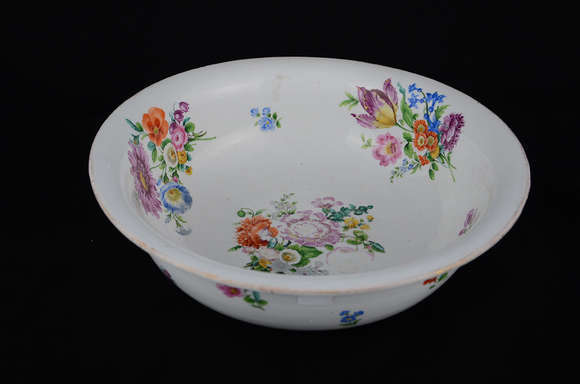 Aparelho de jantar de faiança inglesa com 62 peças, floral, sendo: 20 pratos rasos, 12 pratos fundos, 12 pratos pequenos rasos, 1o pratos de sobremesa, 3 travesas rasas e 5 travessas fundas sendo duas redondas e três ovais. Apresenta alguns frisos com desgaste.