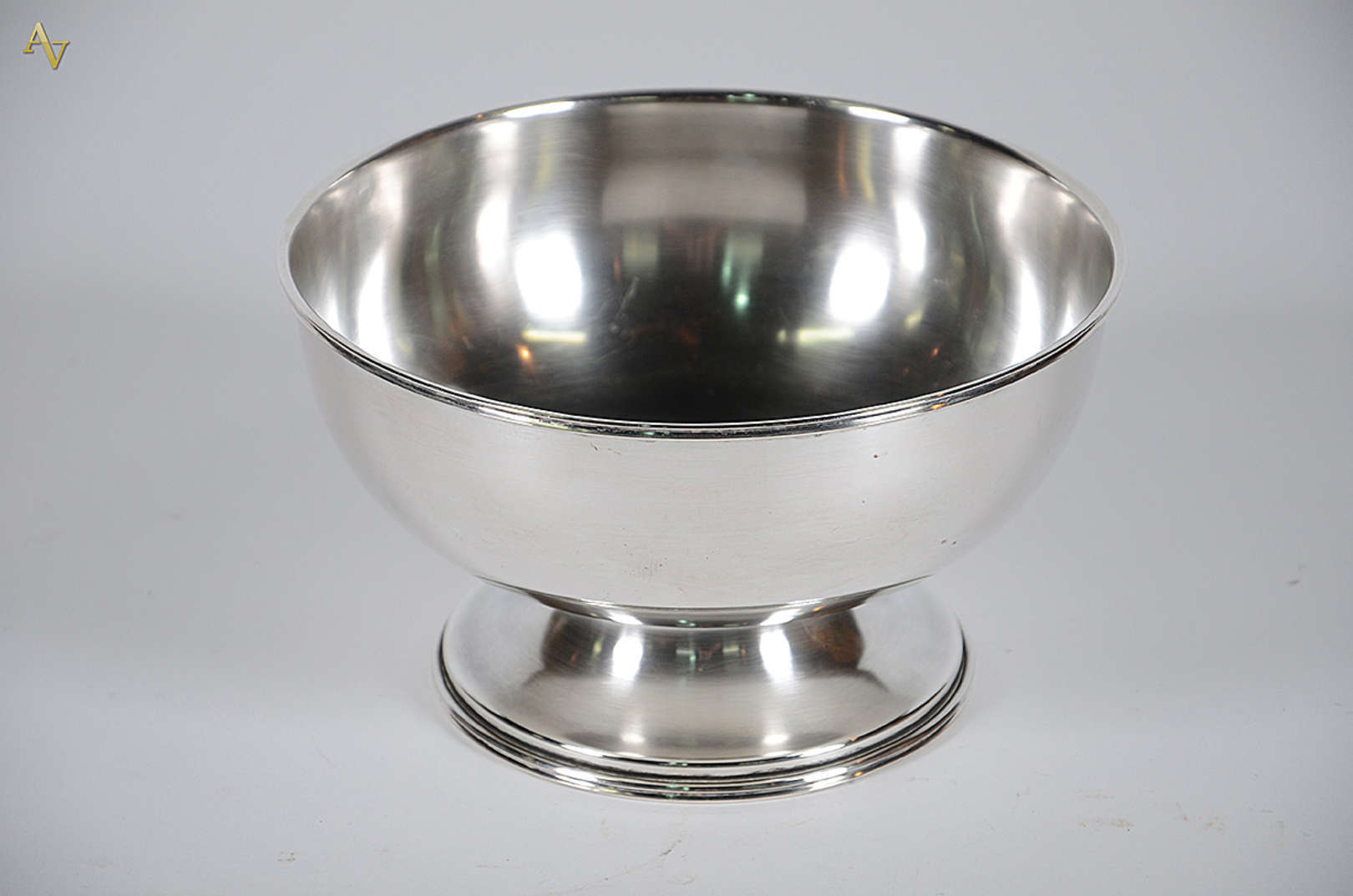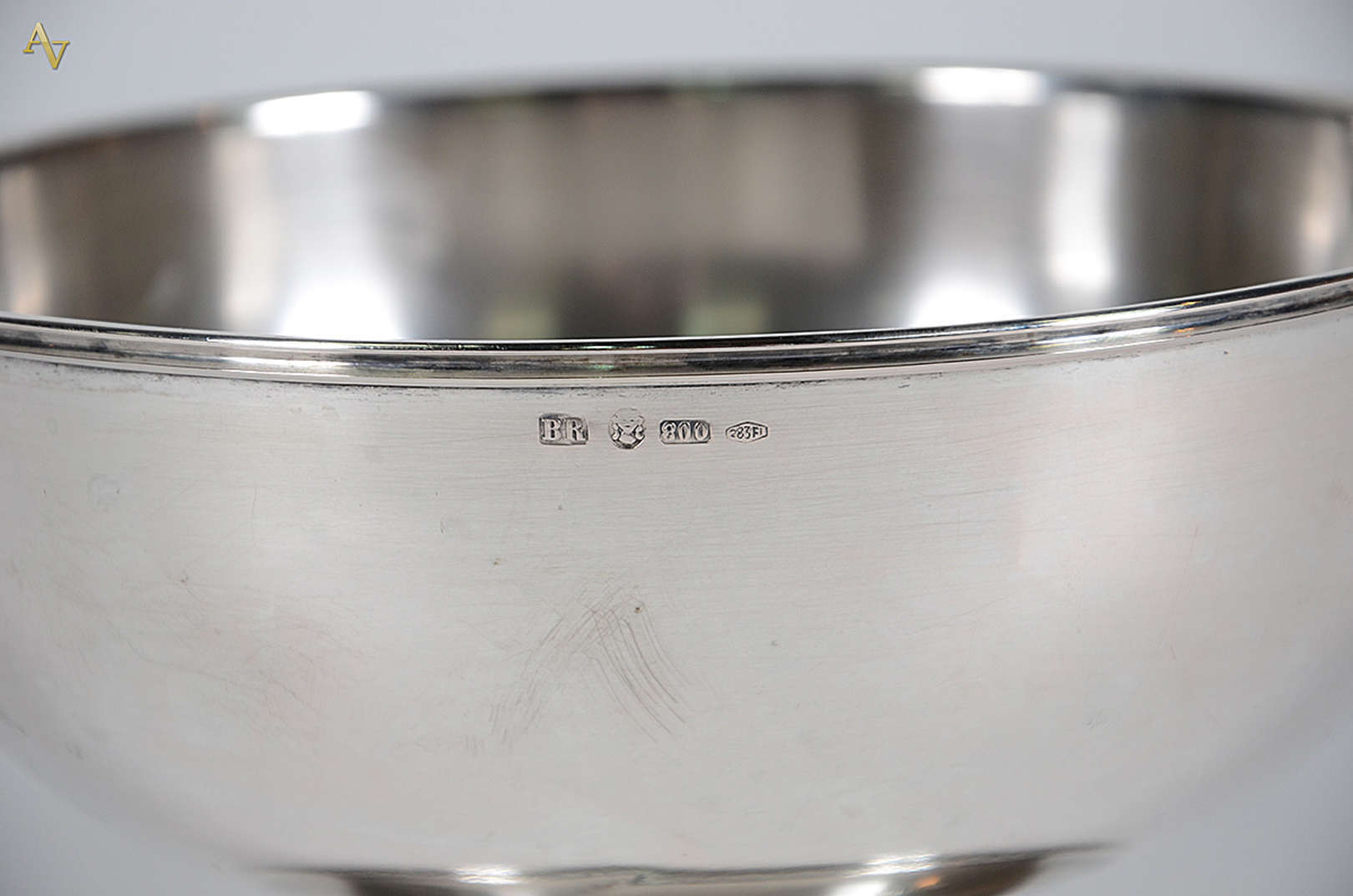 Floreira de prata portuguesa contraste ÁGUIA com presentoir espelhado, diâmetro do presentoir 48 cm. Peso total aprox...