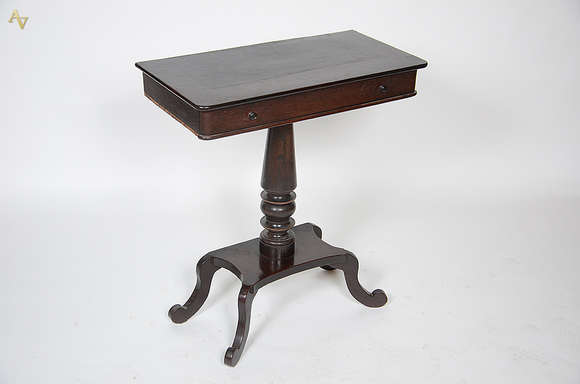 Aparador de jacarandá com uma gaveta, coluna central terminando em platô inferior com 4 pernas recurvas. Medidas 0,71...