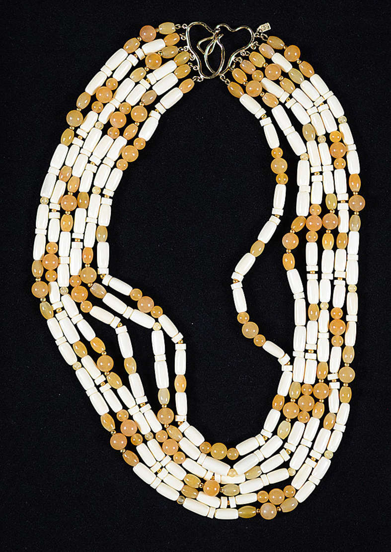 Colar acqua iolita com pérolas cinzas Thaiti, fecho de ouro 18 k, comprimento 104cm.