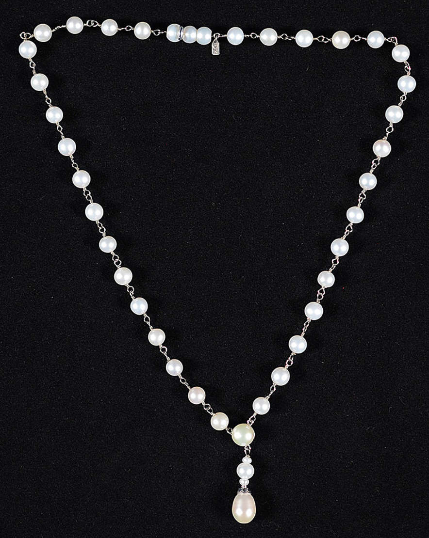 Colar com acqua e pérolas Thaiti, detalhes em ouro amarelo 18 k. Comprimento 94 cm.