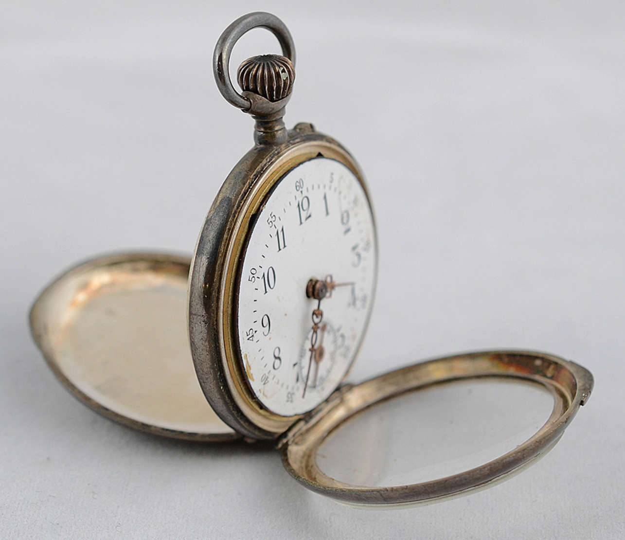 Meia aliança de ouro branco com oito brilhantes. Peso total 1,4 g - Aro 17,5.