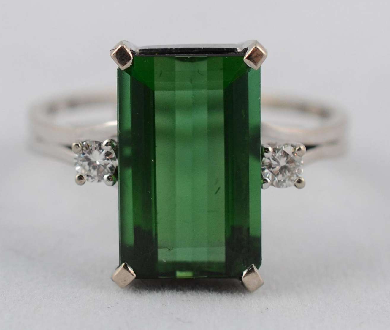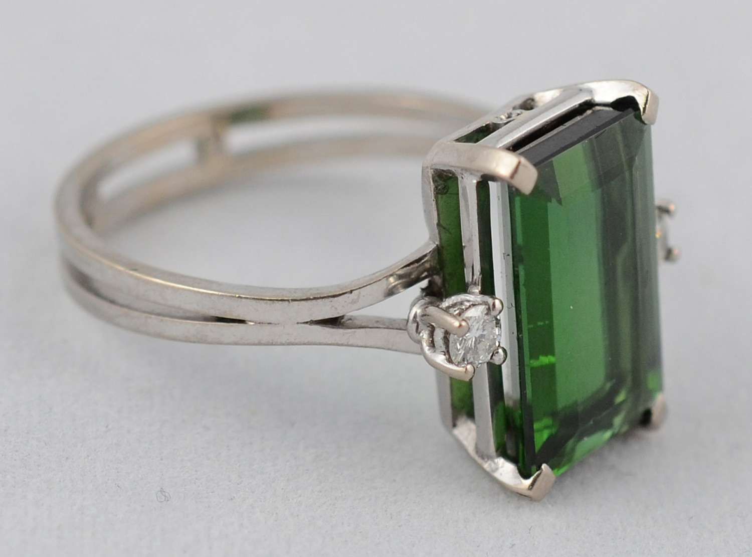 Meia aliança de ouro branco com oito brilhantes. Peso total 1,4 g - Aro 17,5.