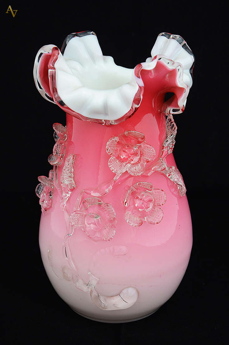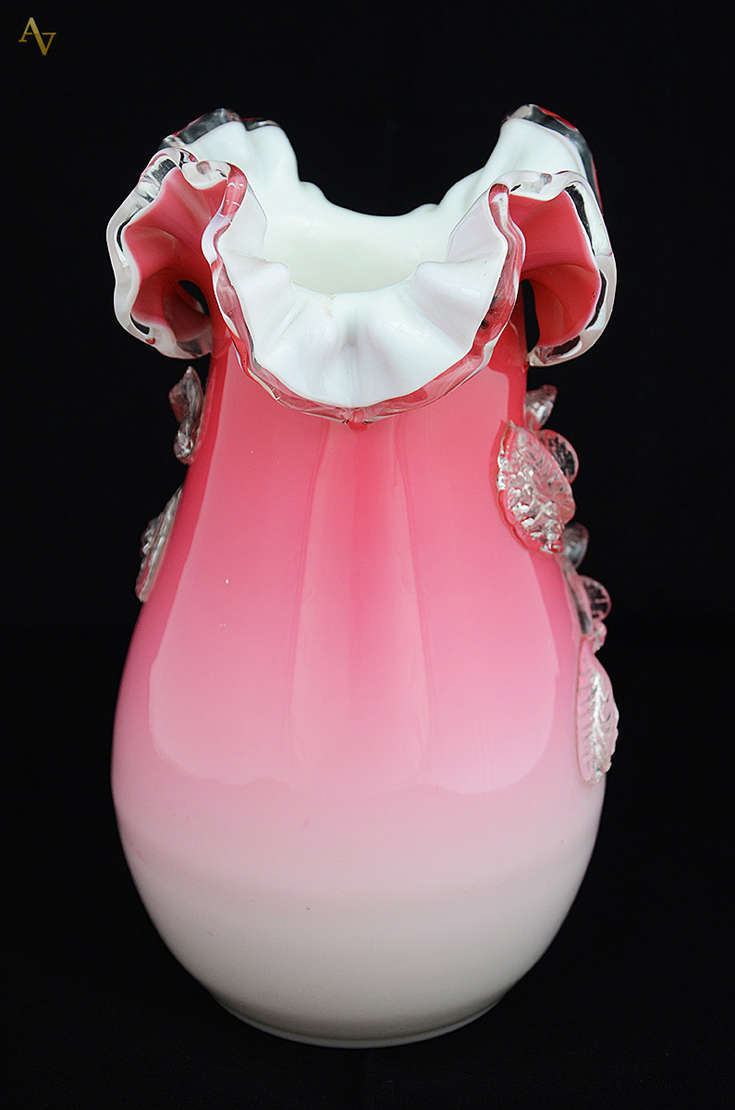 Vaso de murano nas cores rubi e branco. Altura 28 cm.