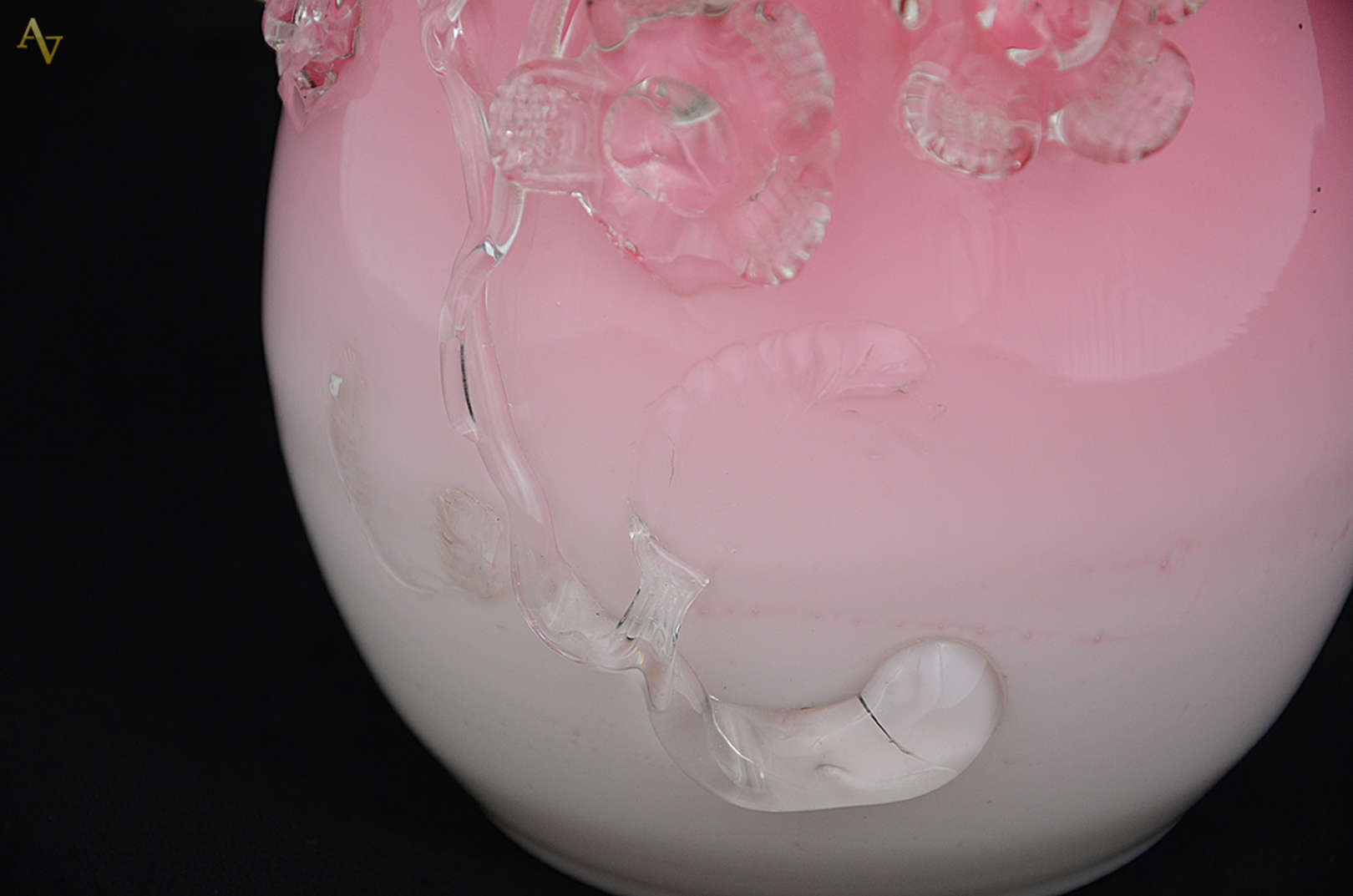 Cornucópia de murano italiano na cor rosa. Altura 42 cm (pequeno bicado na base).
