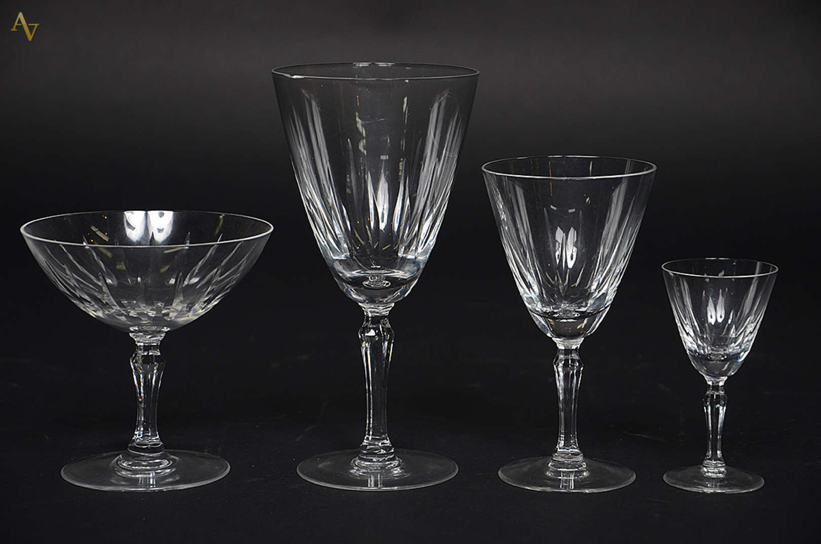 BACARAT - Doze cálices de cristal frances monogramados, marcados na base.