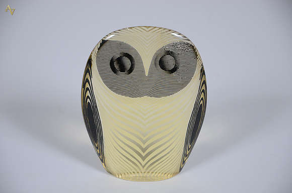 PALATNIK - Escultura em resina de poliéster representando coruja. Altura 12 cm.