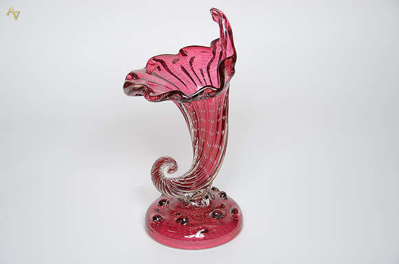 Cornucópia de murano italiano na cor rosa. Altura 42 cm (pequeno bicado na base).