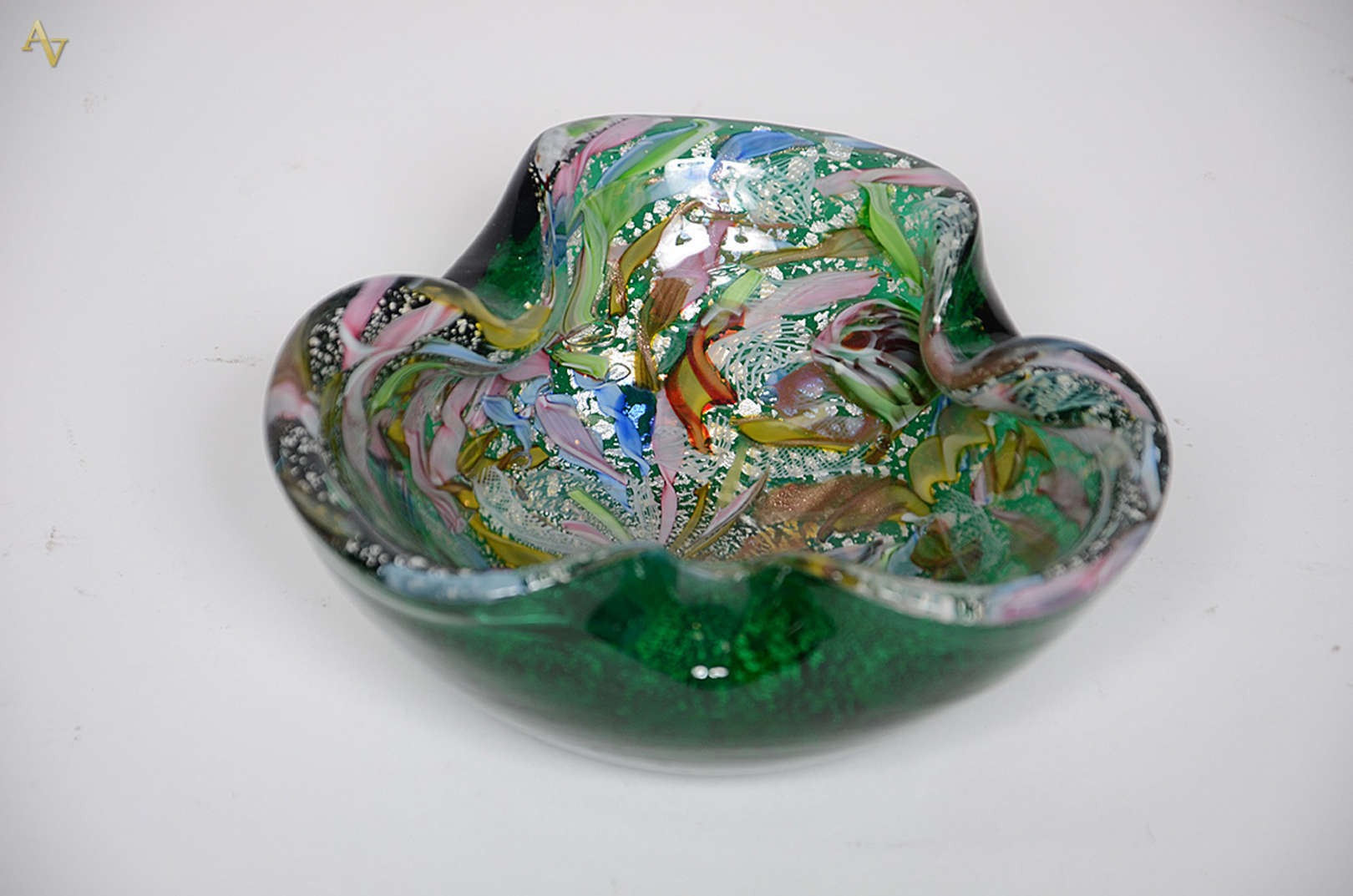 Palhaço de murano verde mesclado. Altura 39 cm.