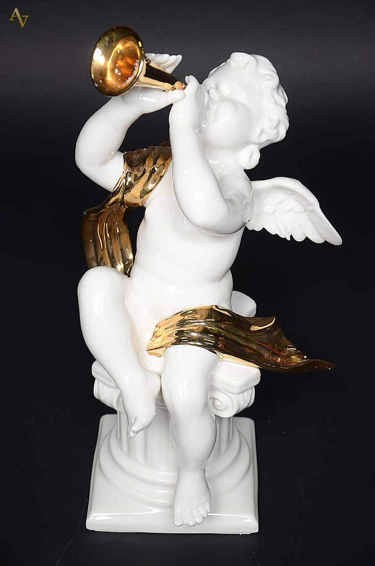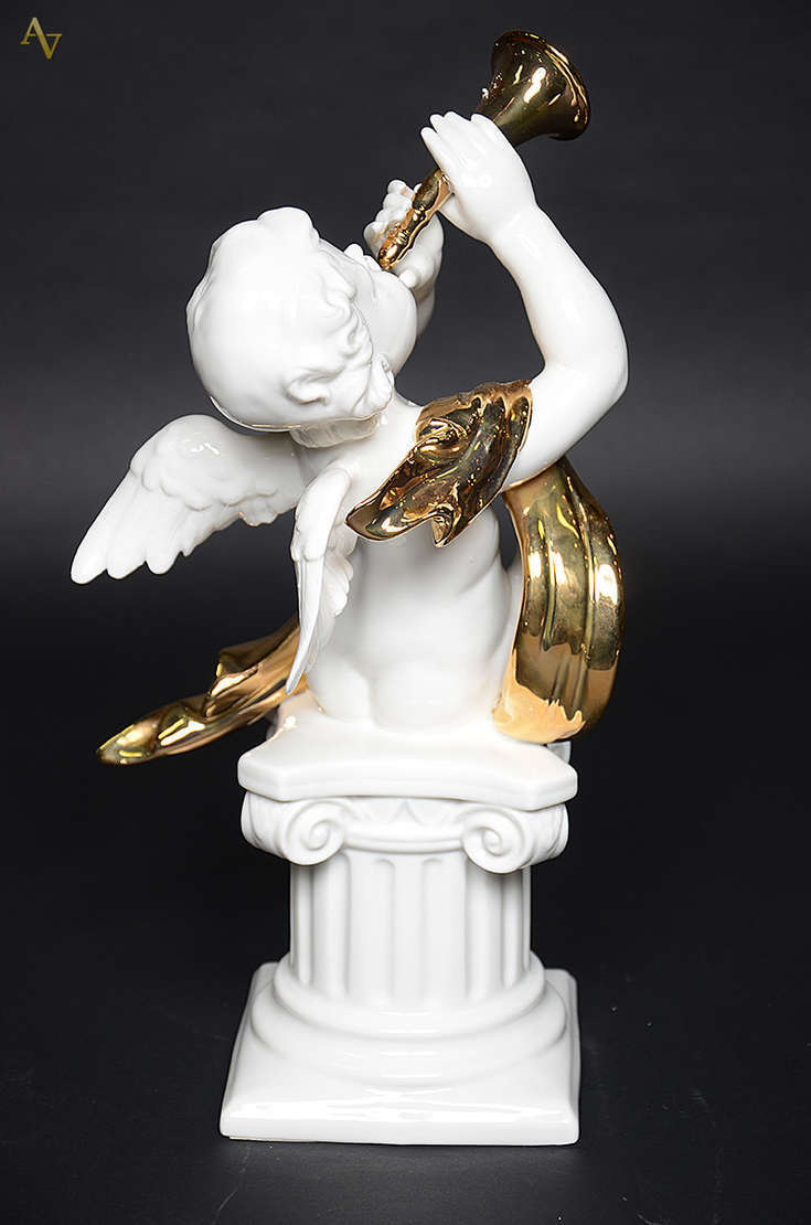 Ânfora em cerâmica branca com detalhes em relevo e alças na forma de anjos, procedência italiana. Altura 40 cm.