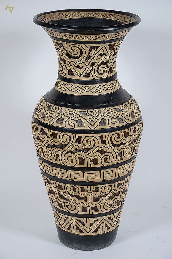Vaso de cerâmica estilo Marajoara. Altura 1,05 m.