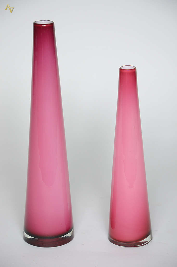 Par de antigos solifleures de vidro na cor vermelha. Altura 45 cm.