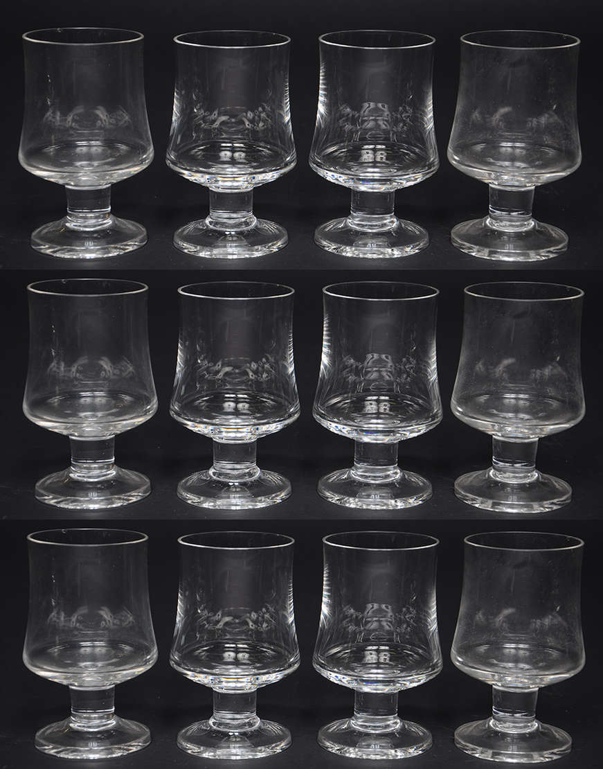 BACARAT - Doze cálices de cristal frances monogramados, marcados na base.