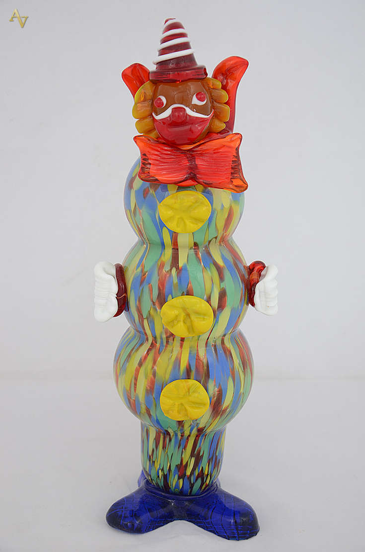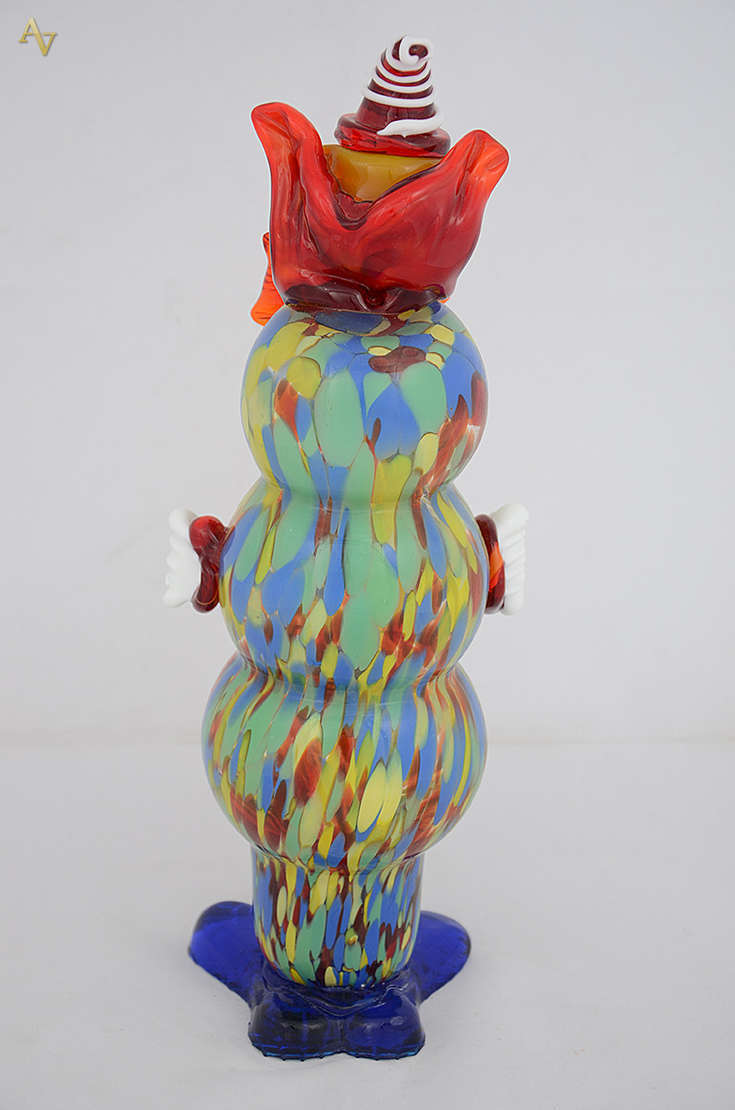 Palhaço de murano branco mesclado. Altura 32 cm.
