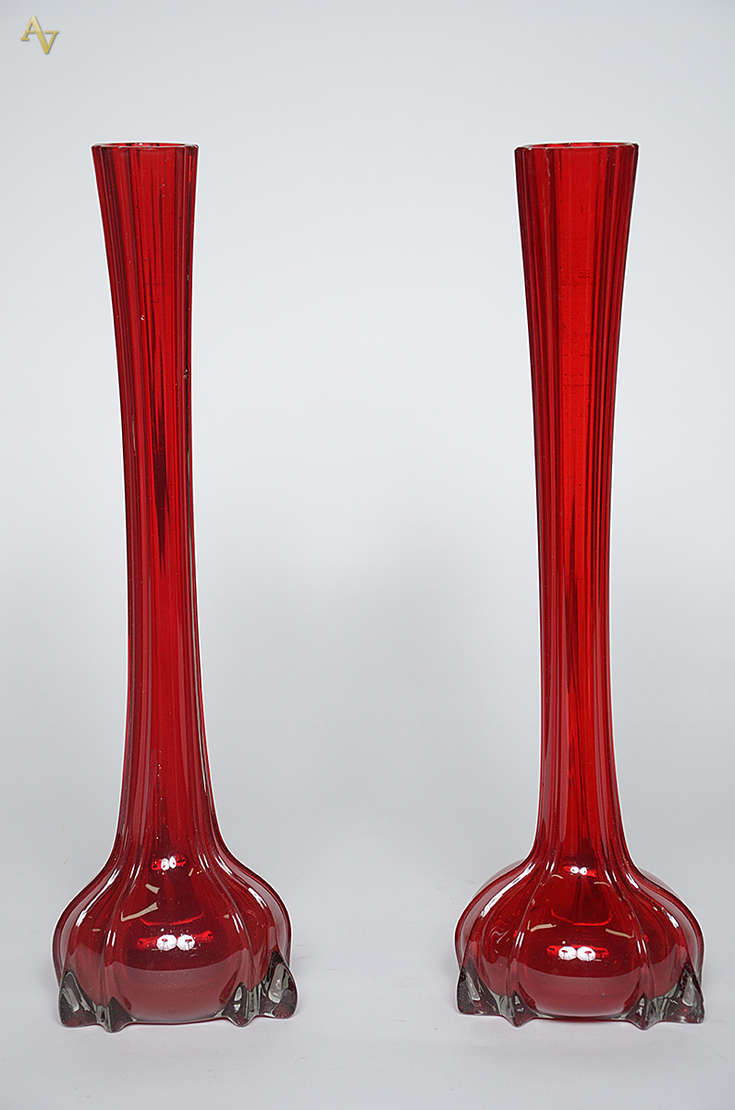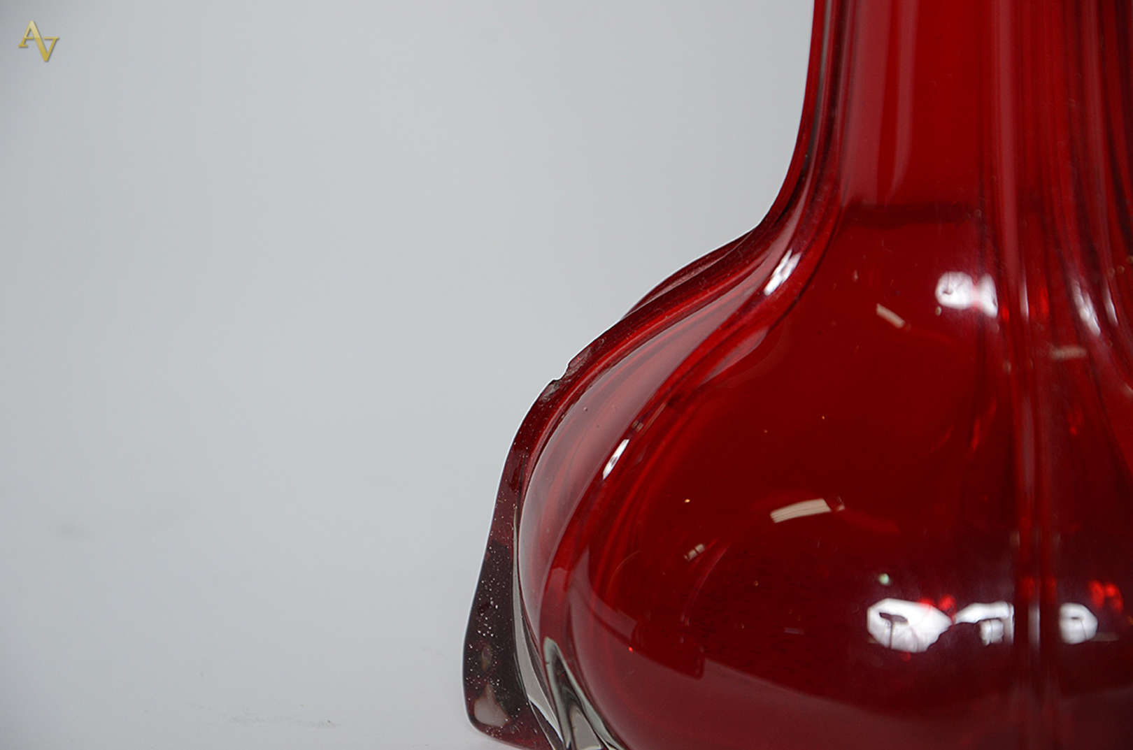 Vaso de murano nas cores rubi e branco. Altura 28 cm.