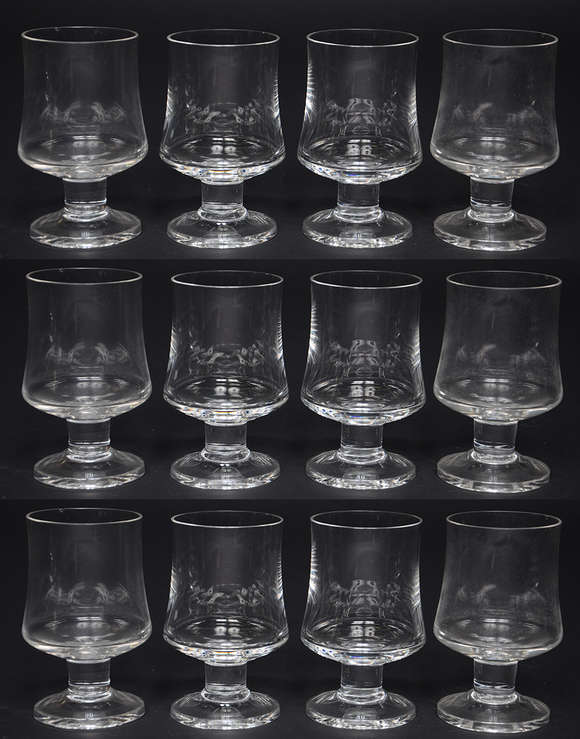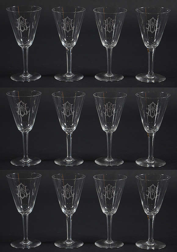 BACARAT - Doze cálices de cristal frances monogramados, marcados na base.