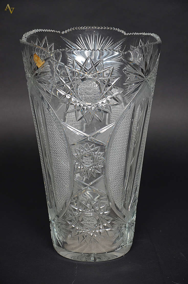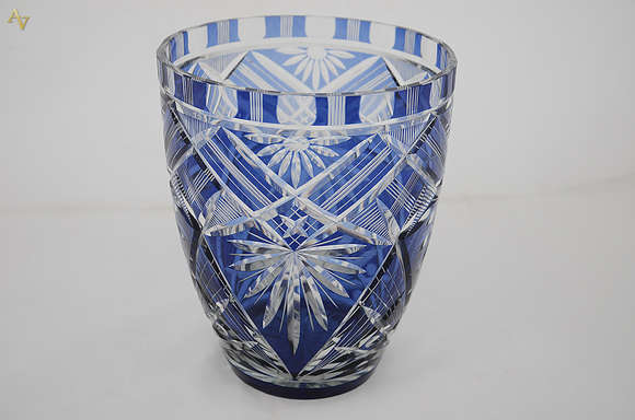 Vaso de cristal lapidado doublé azul. Altura 21 cm.