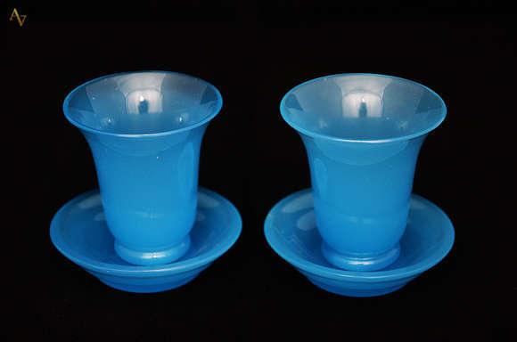 Par de copos de opalina azul para chá. Altura 8 cm.
