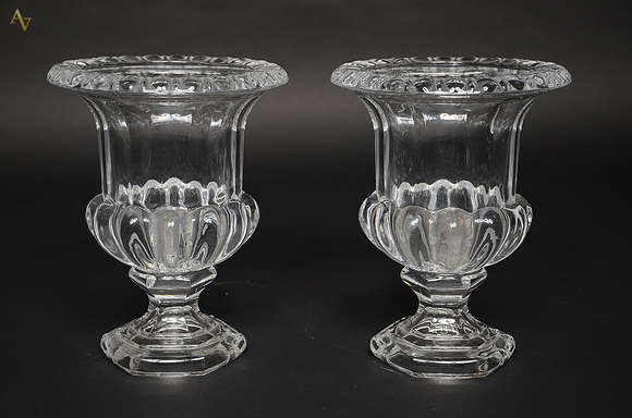 Par de vasos de cristal europeu estilo Medici. Altura 26 cm.
