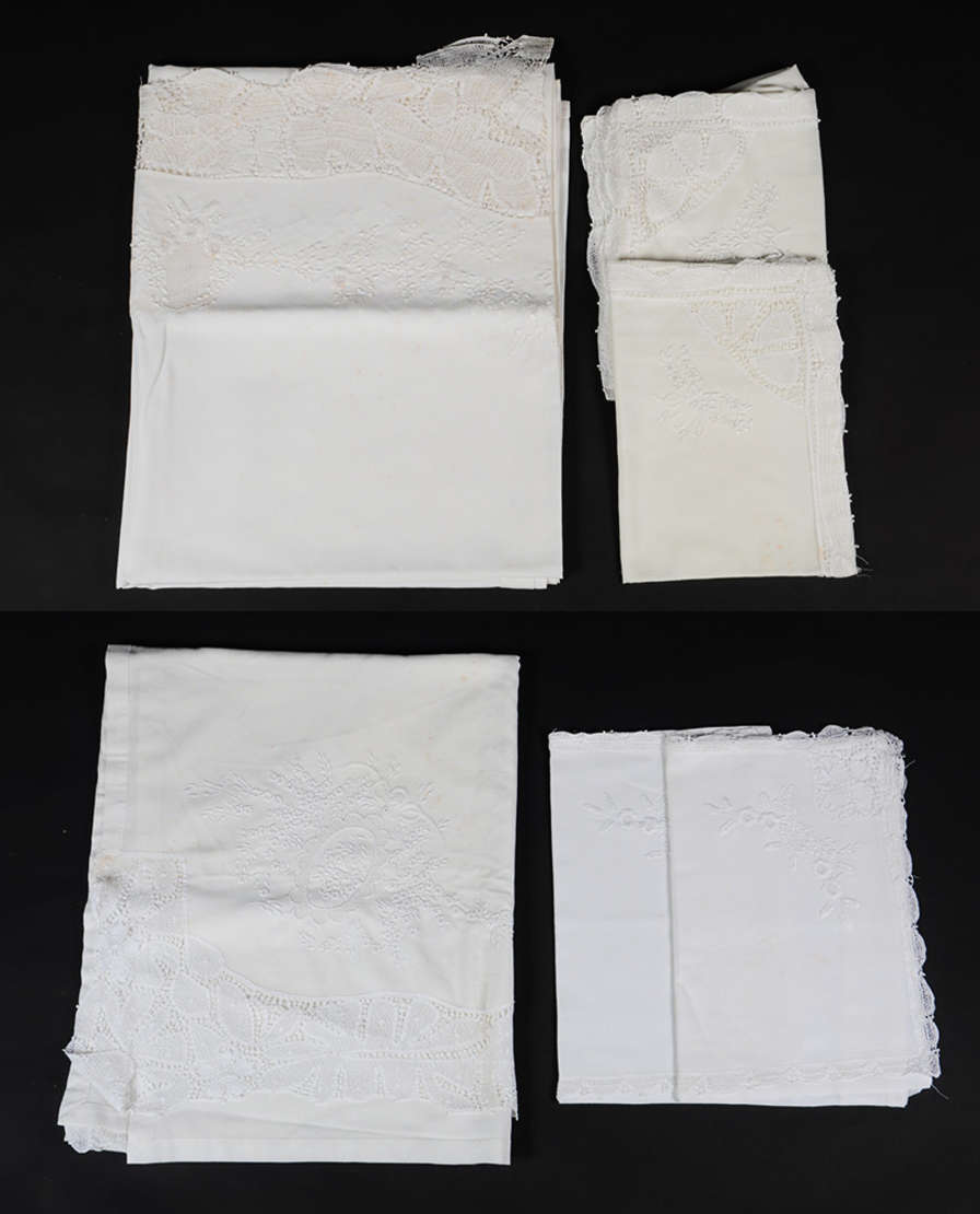 Jogo americano de linho com bordados da Ilha da Madeira, com 6 peças e 6 guardanapos, caminho de mesa e pano para ban...