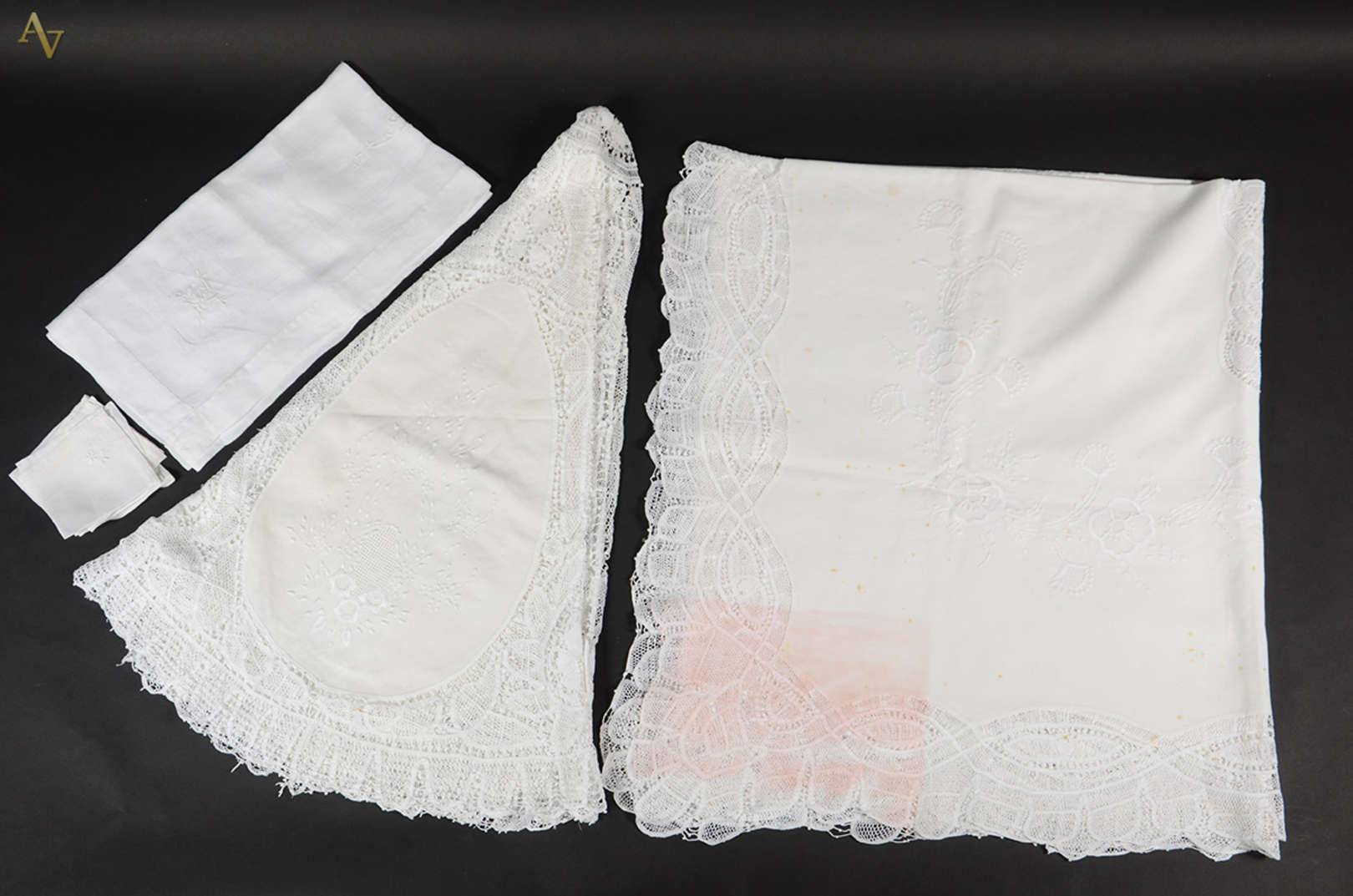 Jogo americano de linho com bordados da Ilha da Madeira, com 6 peças e 6 guardanapos, caminho de mesa e pano para ban...