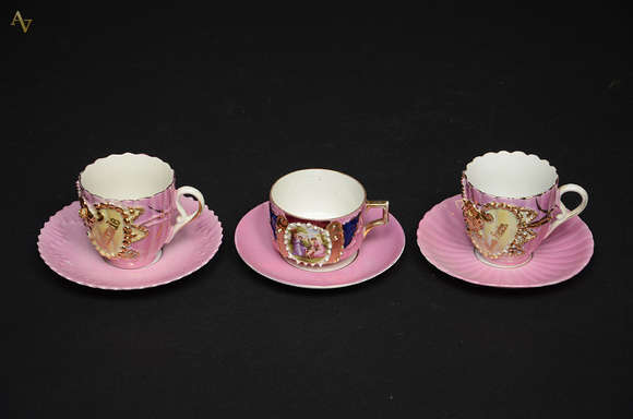 Três peças de porcelana branca, sendo dois bules (um ingles com folhas em relevo, pequeno lascado na tampa) e vaso. Alturas de 26 à 38 cm.