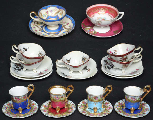 Conjunto com onze xícaras para café com pires, de porcelana KPM.