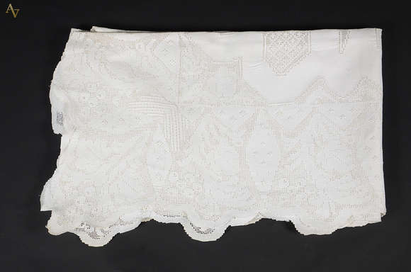 Toalha de linho branco com labirinto. Medidas 2,70 x 1,60 m.