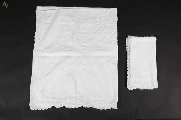Jogo americano de linho com bordados da Ilha da Madeira, com 6 peças e 6 guardanapos, caminho de mesa e pano para ban...