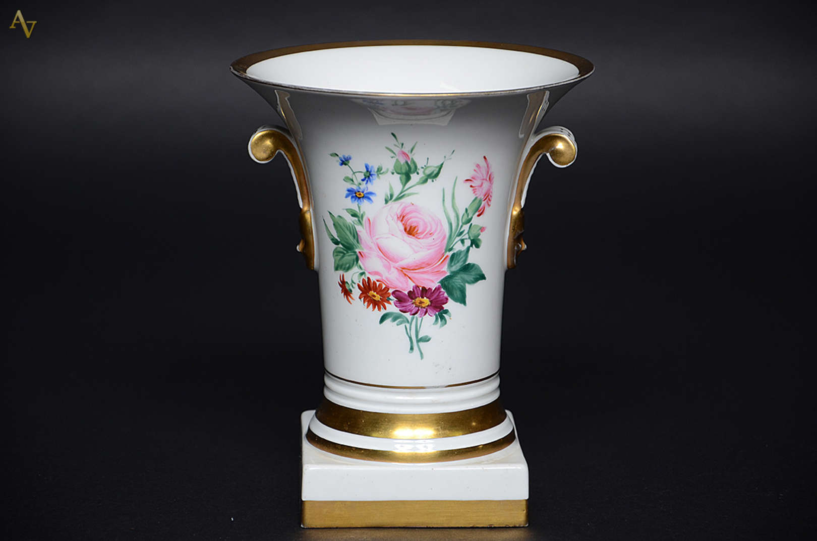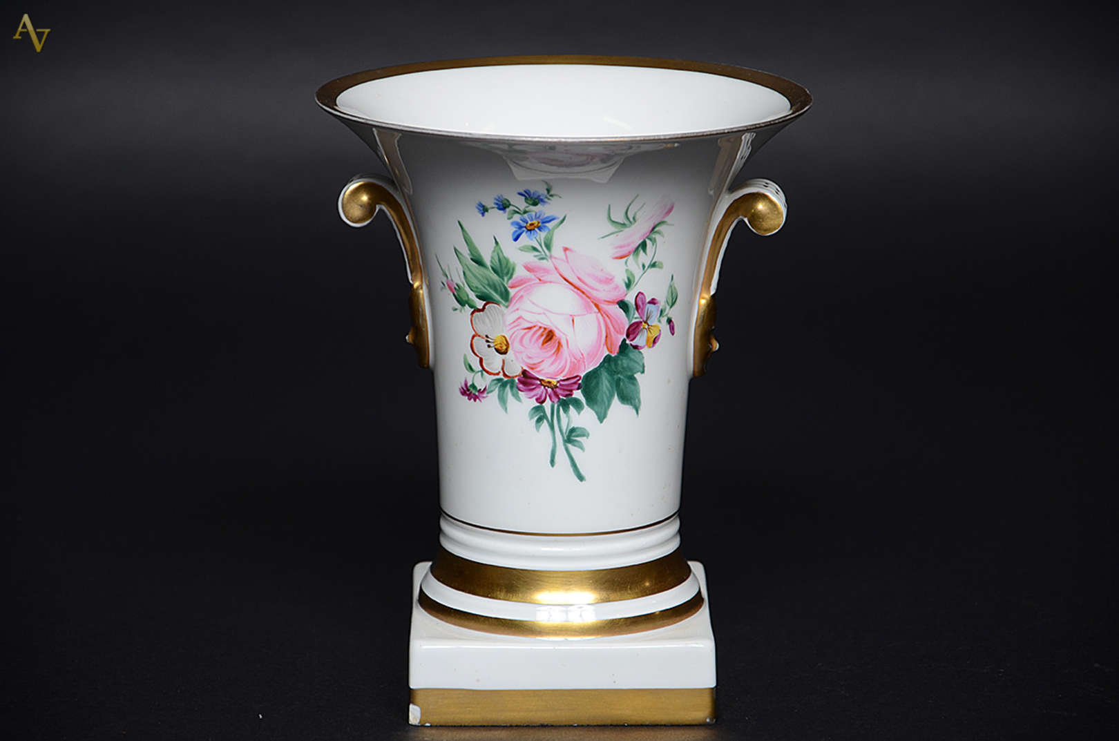 Vaso de porcelana com pássaros e flores. Altura 30 cm.