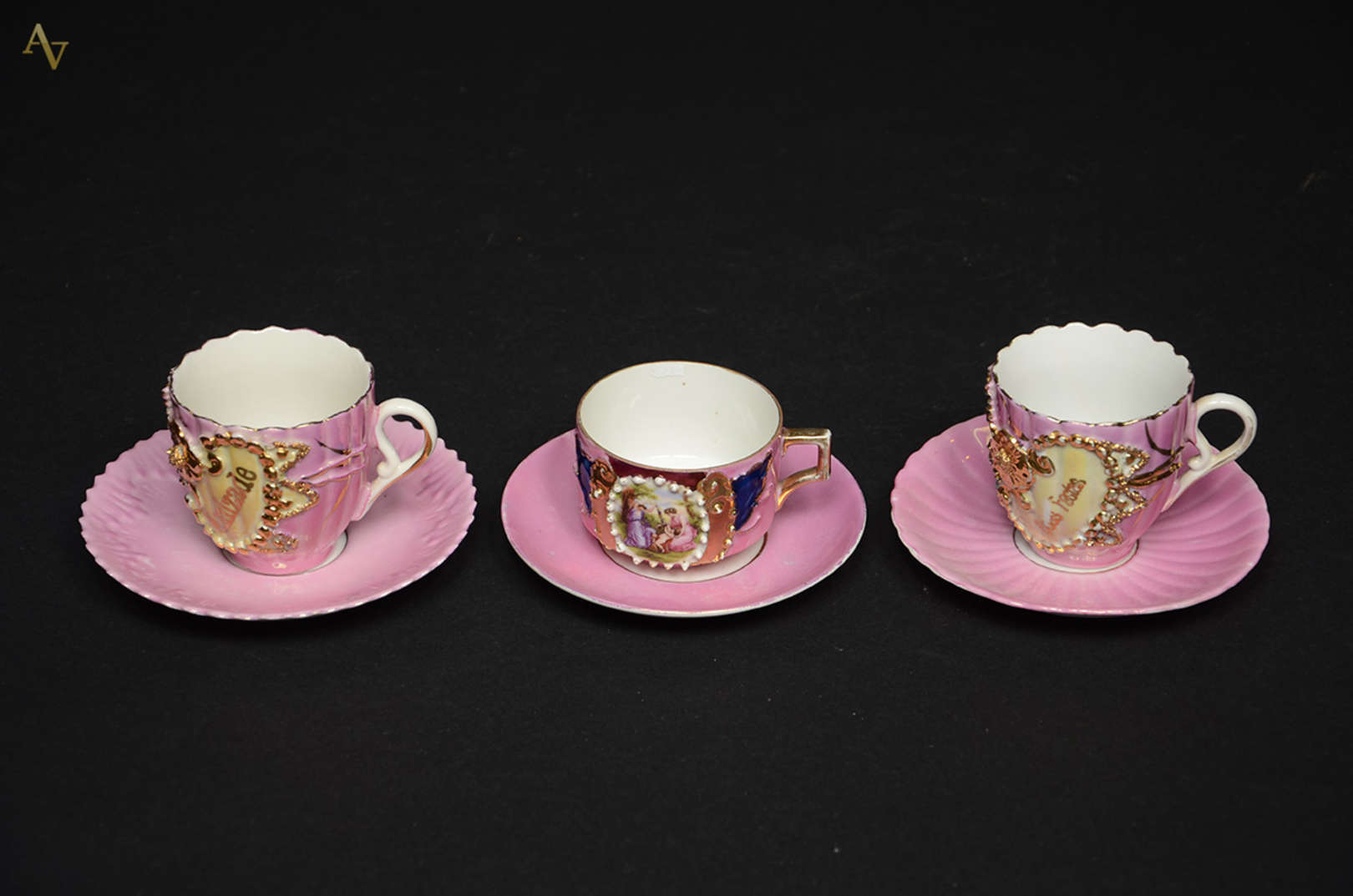 Conjunto com onze xícaras para café com pires, de porcelana KPM.