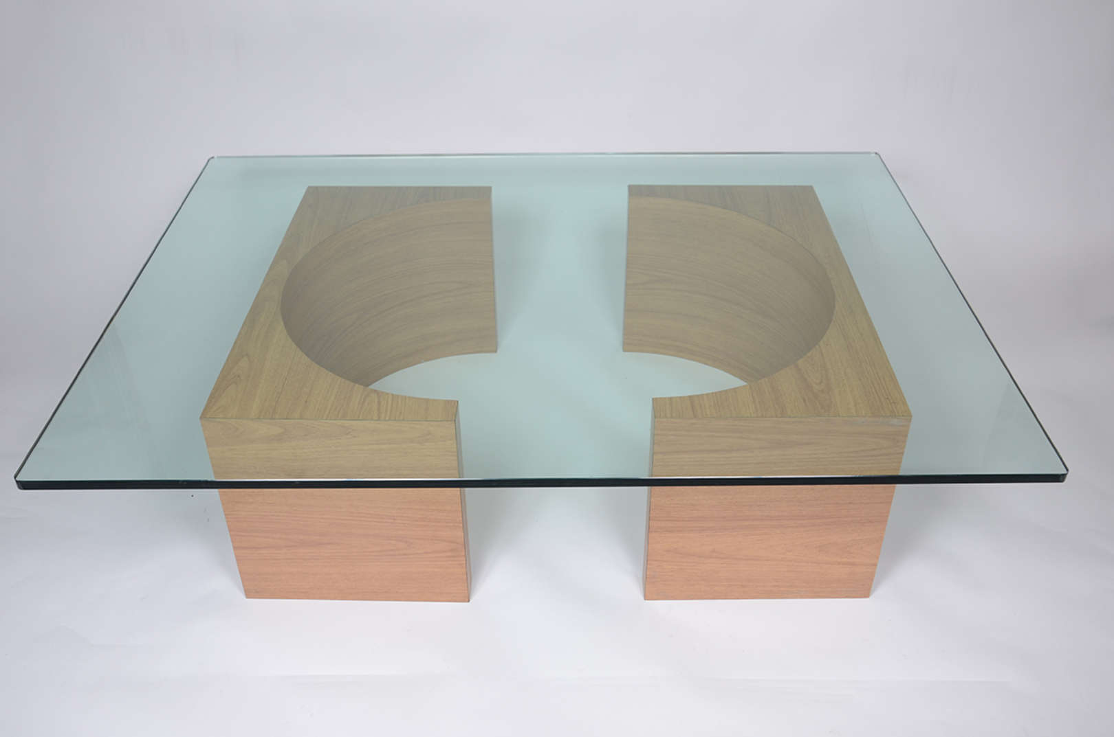 FRANZ WEISSMANN - Mesa de centro composta por dois módulos de madeira forrados de fórmica, tampo de vidro. Ex coleção Martha Weissmann. Medidas 1,10 x 1,50 m e altura 0,41 cm.