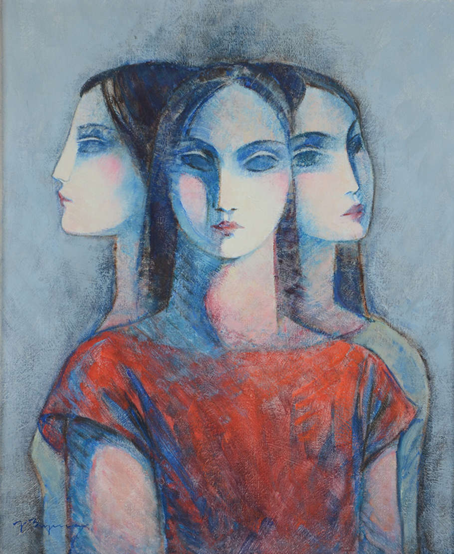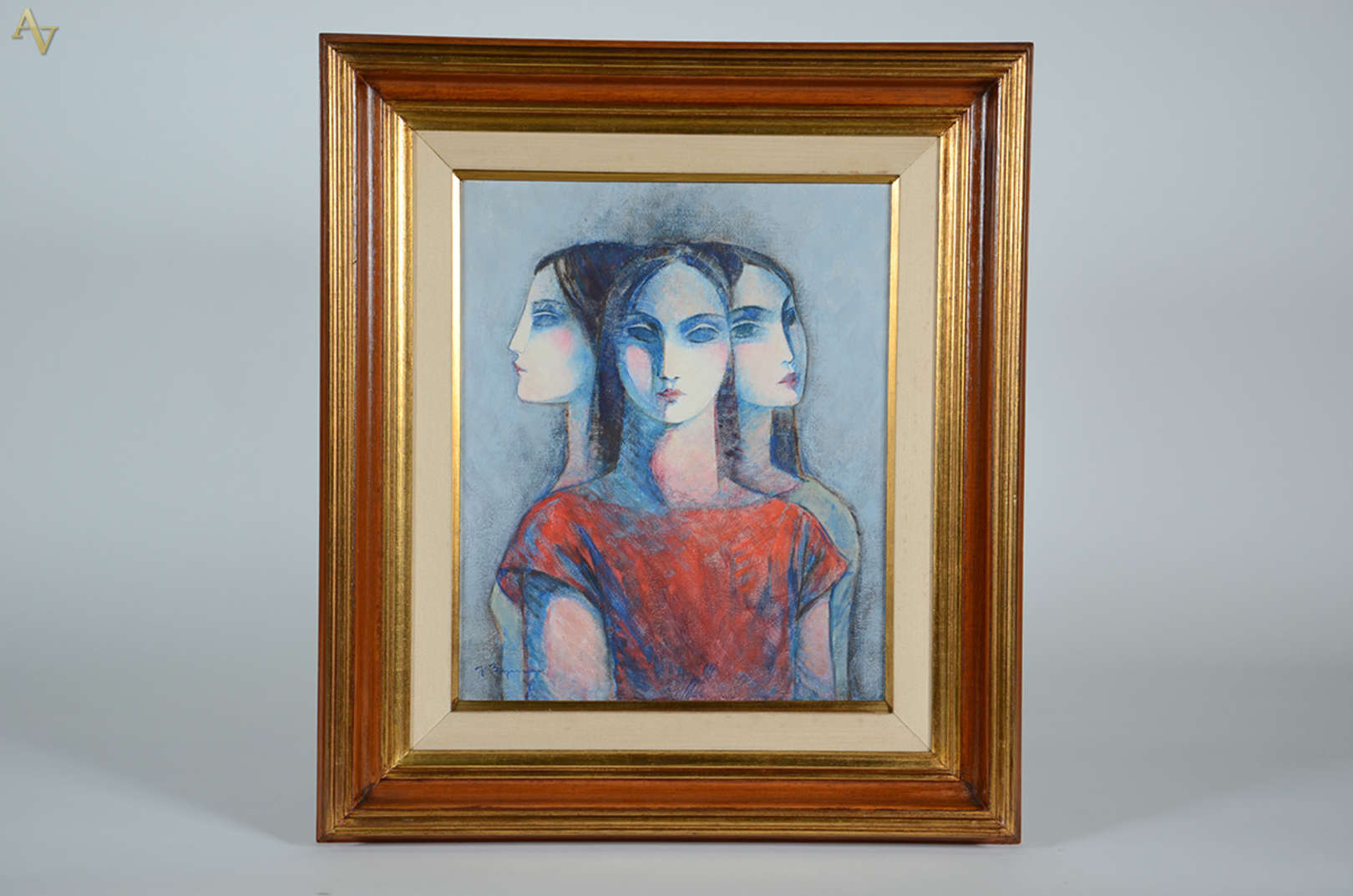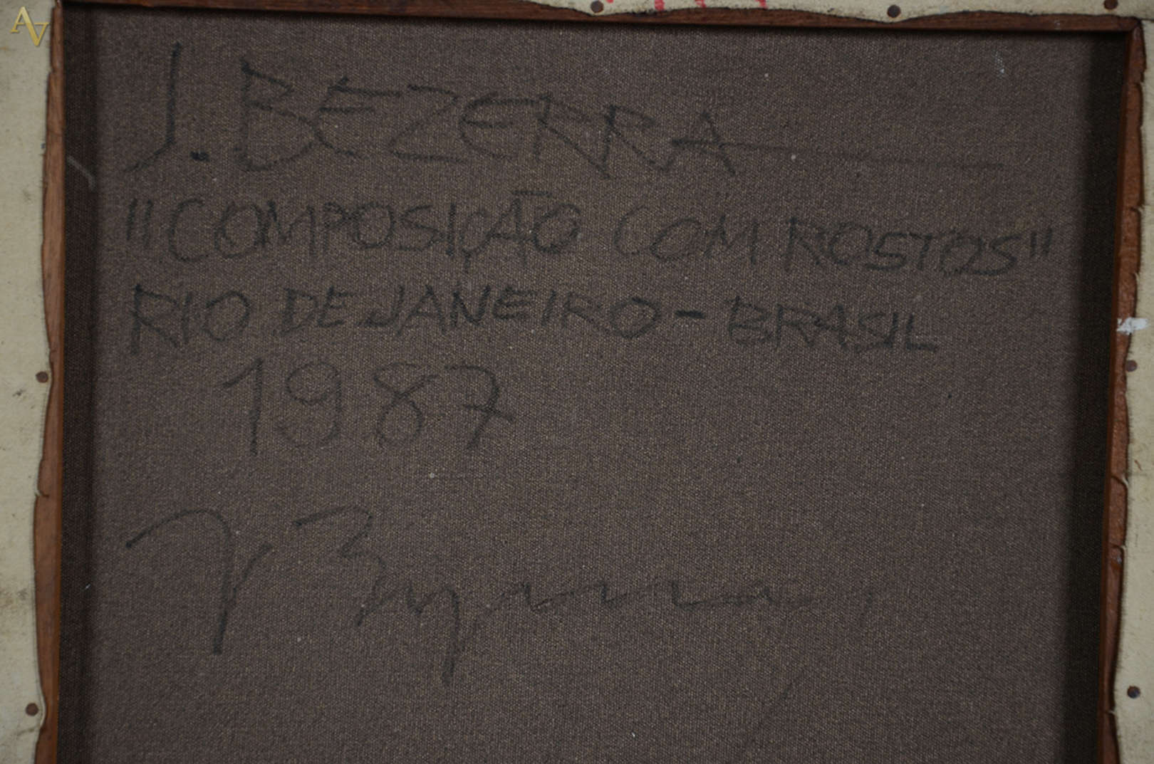 J. BEZERRA (1939) - "Composição com rostos" - Rio de Janeiro - ost - 46 x 38 - datado 1987