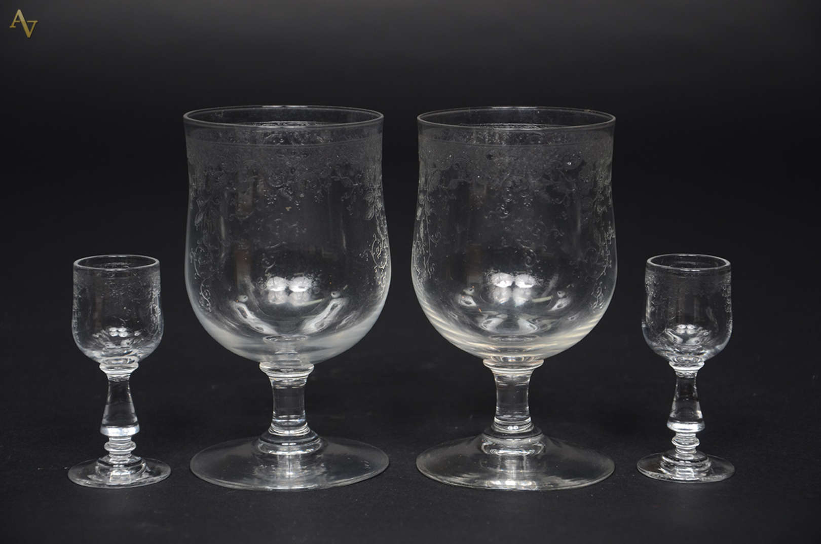 BACARAT - Serviço de cristal frances lapidado, sendo 9 taças para champagne, 12 cálices para vinho, 11 para vinho do ...
